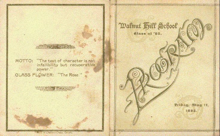 - Commencment program cover for the Walnut Hill School, Class of 1895. Dated Friday, May 17, 1895. Contributed by Richard Henry (his g-grandmother was Florence Burroughs)