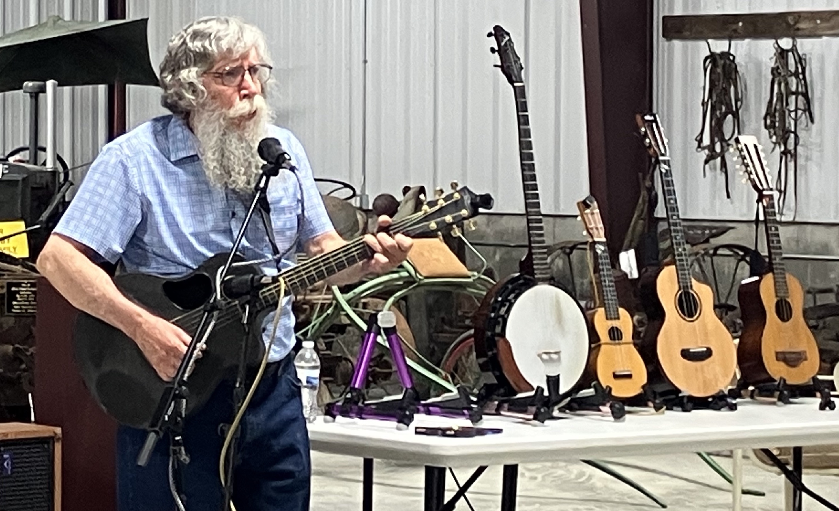 Prior to the meeting David Seay (pronouned See) of Avoca entertained the public with his Humanites Nebraska Speakers Program - "Train Songs and Tales." Root Beer floats and cookies were served from the AG II Building Kitchen. |