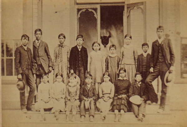 The picture is from the Normal School Agency in Santee, Nebraska. It is dated 1884.